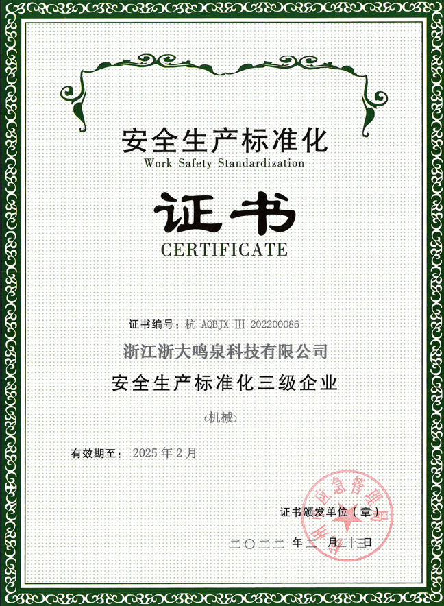 2022年2月23日,我司再次荣获由杭州市应急管理局颁发的安全生产标准化三级企业证书,这是对于我司创建安全生产标准化建设的肯定,也体现了《浙大开云网(中国)发展战略》中创建安全生产标准化建设这项体系性工作的进一步落实。